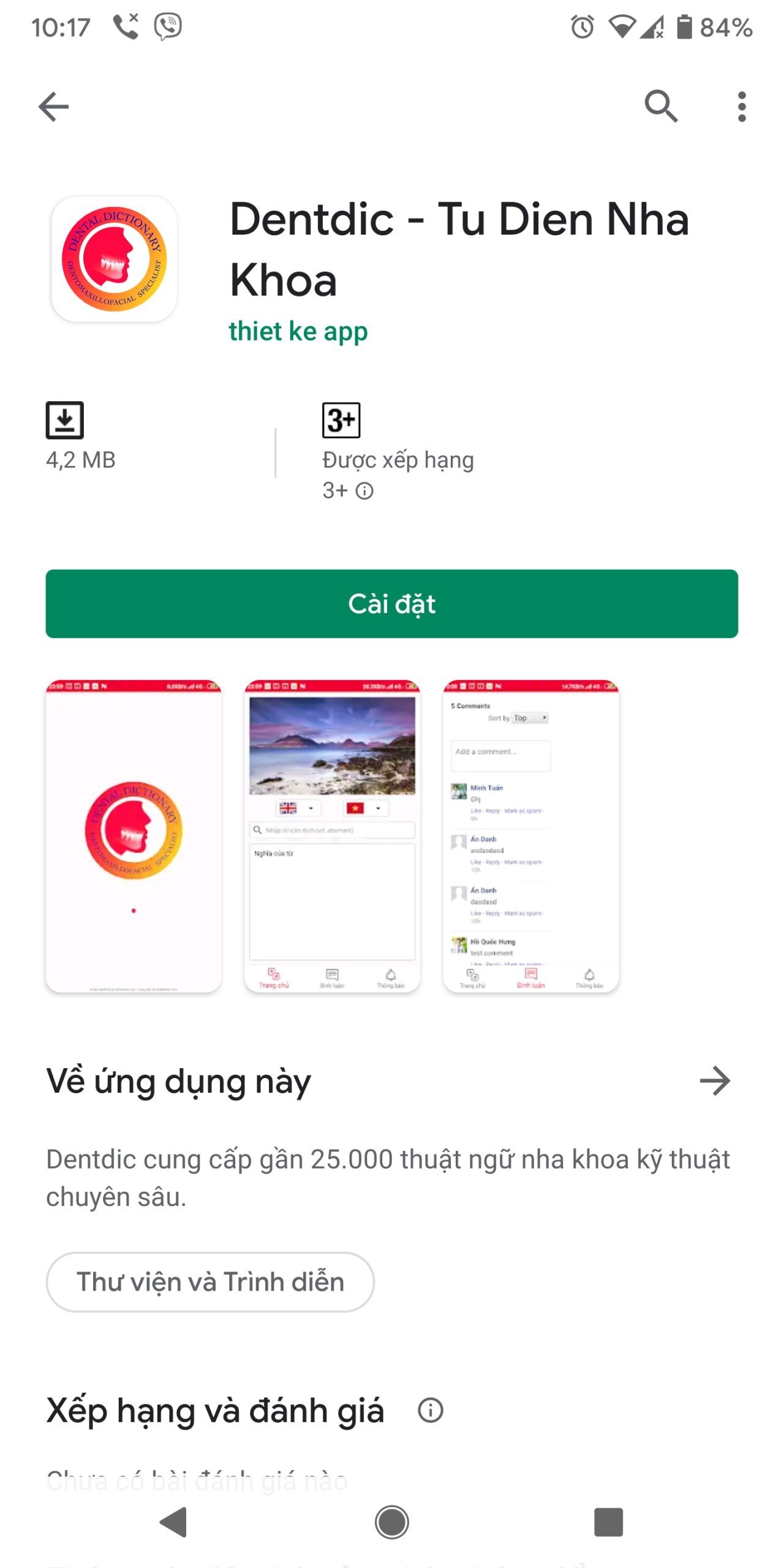 2/ Tải ứng dụng Dentdic trên Google Play: https://play.google.com/store/apps/details?id=com.thietke24h.tudiennhakhoa&hl=vi