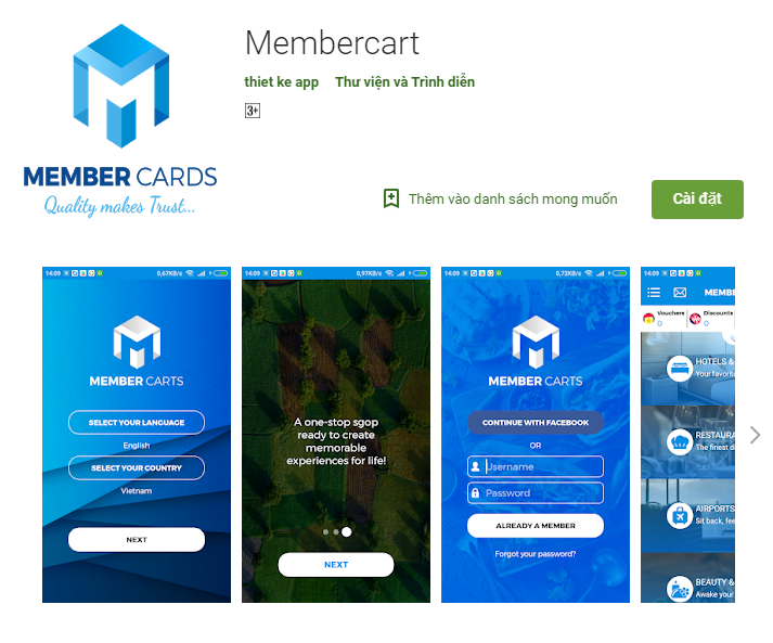 Membercart là một ứng dụng điện thoại hoạt động thuộc lĩnh vực du lịch. Trong đó có các ngành hàng, dịch vụ như khách sạn, nhà hàng, chuyến bay,.. có luôn cả những voucher khuyến mãi cho khách hàng, rất tiện lợi cho khách hàng.